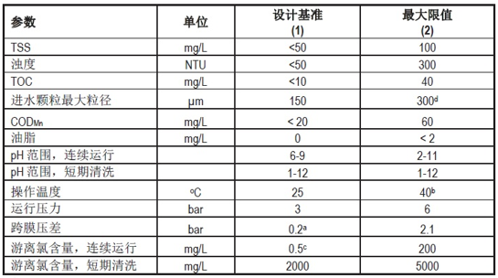 (2) 在最大限值水質(zhì)條件下運行,需要評估對系統(tǒng)運行性能的影響;