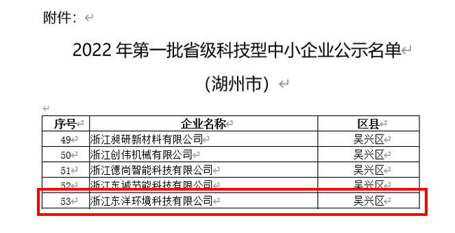 祝賀東洋環(huán)境科技評為2022年第一批省級科技型中小企業(yè)